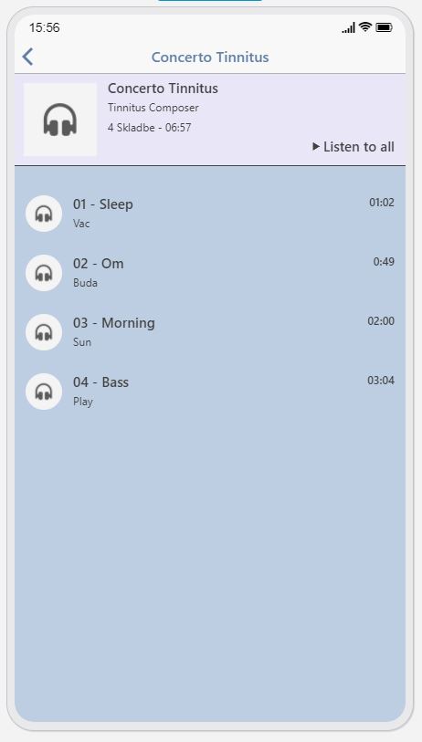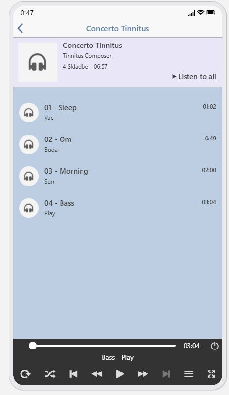The mobile tinnitus app with sounds works on other frequencies. In developing the app, the researchers took into account scientific studies that the Buddhist mantra Om Mani Padme Hum is made up of frequencies that are known to create strong vibrations when chanting. The OM syllable is always considered to be the most important syllable and has been found in many religions. Repeating the OM mantra causes brain stabilisation and stress relief. The OM mantra consists of three frequencies that are repeated in songs in a mobile tinnitus app. These are four tracks, the duration of which is 7 minutes, as long as the bio-frequency therapy lasts.